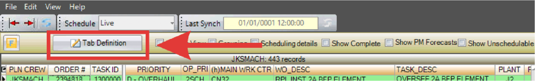 - Click the Tab Definition button at the top left of the screen.