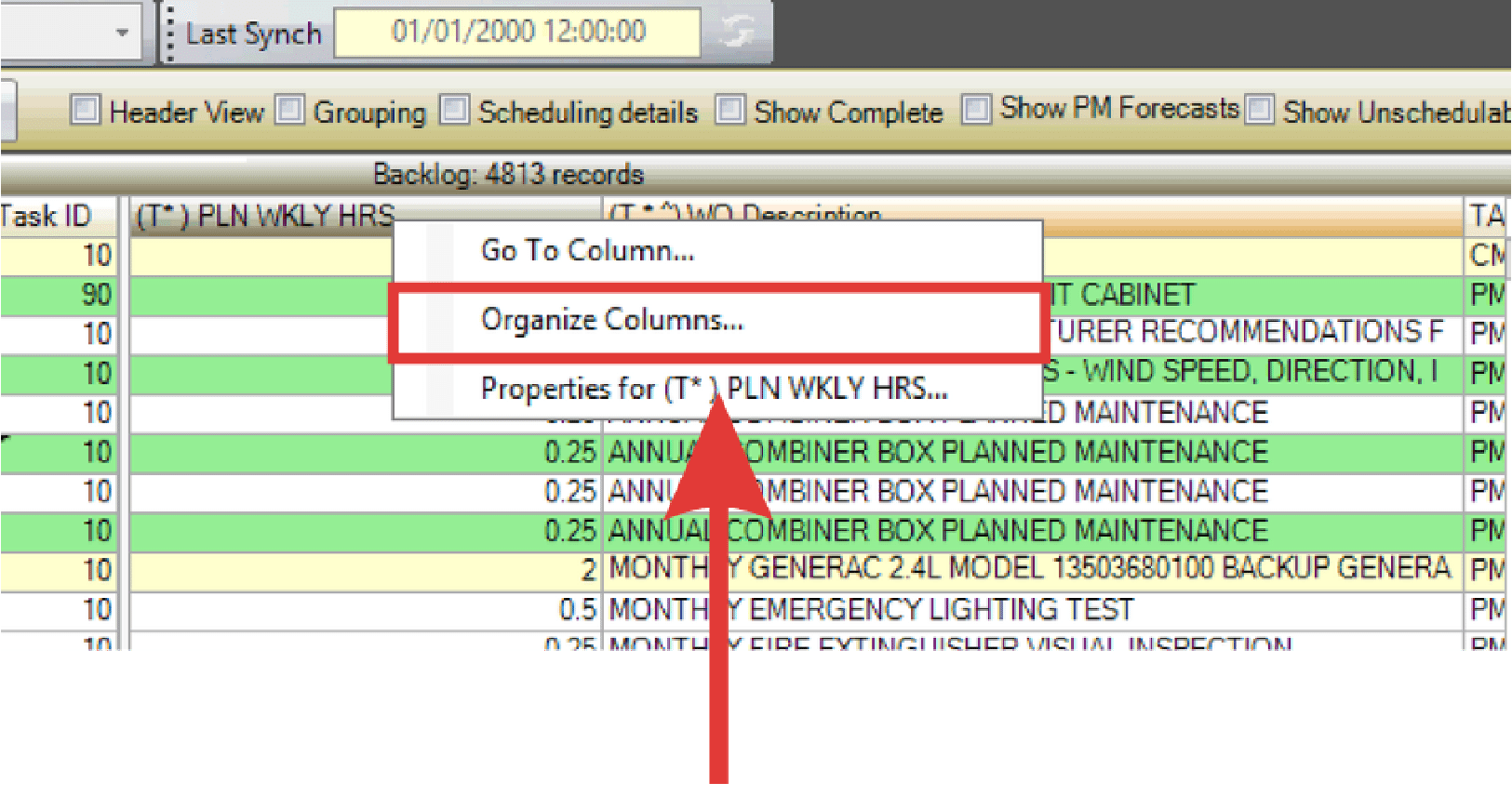 1. Right-click a column header and select Organize Columns.