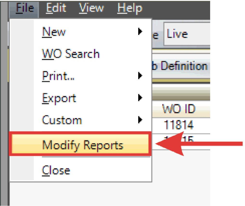- Click File > Modify Reports.