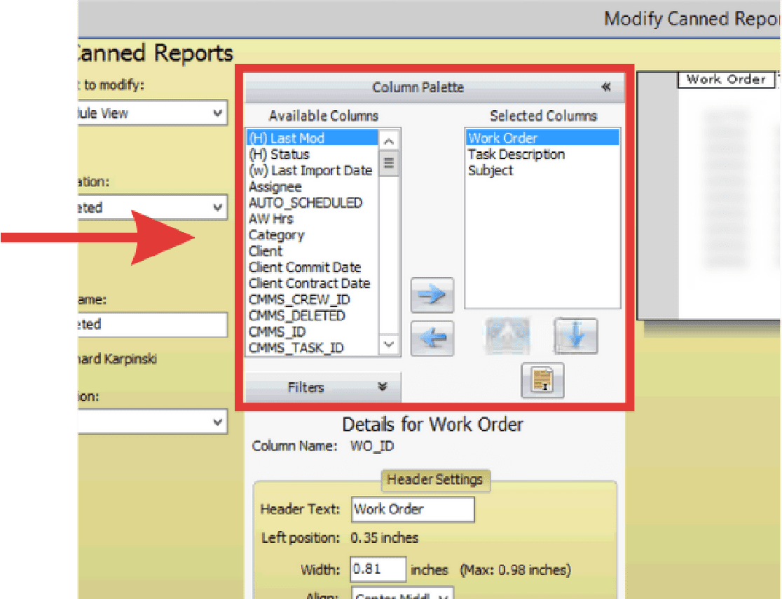 - The Modify Canned Reports dialogue box appears. Choose a report to modify using the drop down.