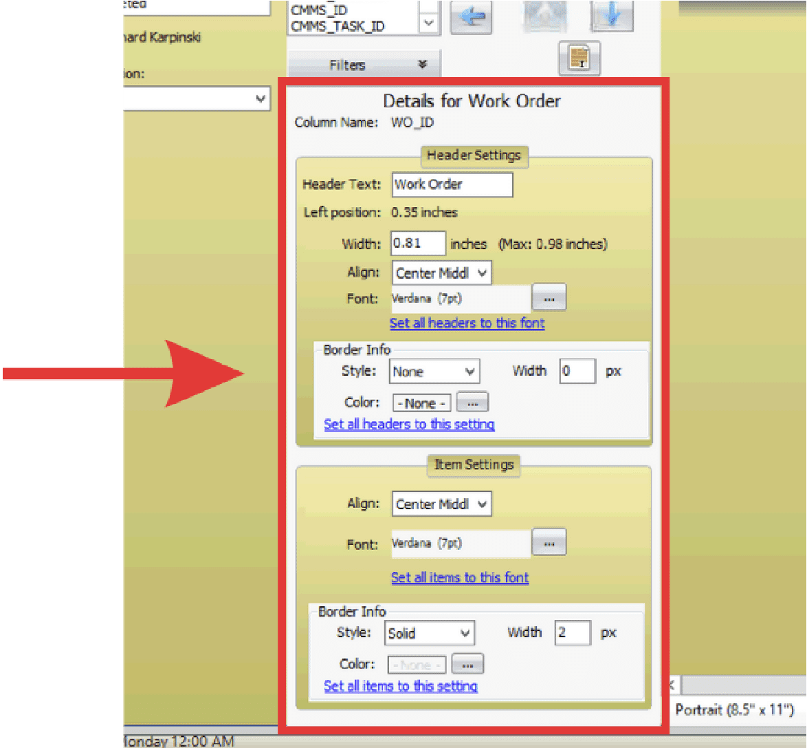 - Enter the name of the modified report and determine if it’s Portrait or Landscape.