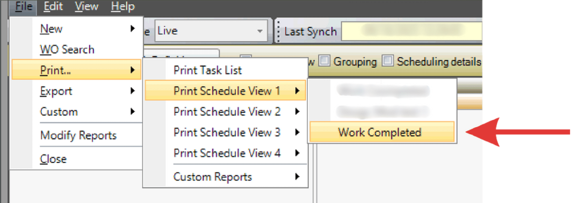 - Go to File and select Print. When canned reports appear, select the new modified report.